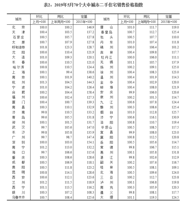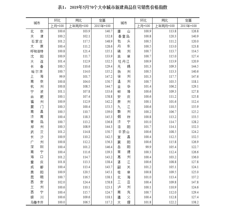 国家统计局今日发布了2019年5月份70个大中城市商品住宅销售价格变动情况统计数据。对此,国家统计局城市司高级统计师刘建伟进行了解读。