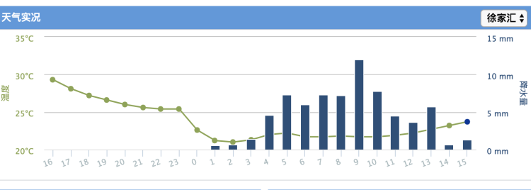 昨晚20时至今天15时累积雨量显示,基准观测站中徐家汇70.9毫米为最大,自动站中最大为浦东新区金桥91毫米,最大小时雨强出现在浦东新区大团18.3毫米,为18日08时-09时。