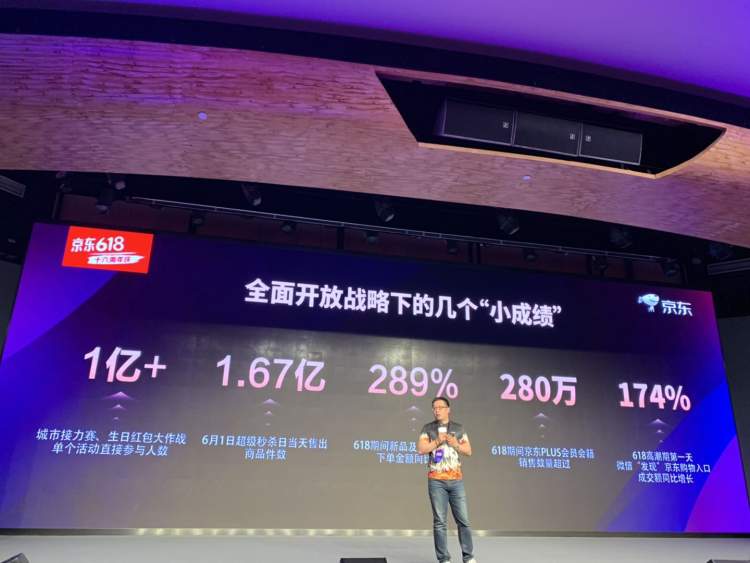 在 618 期间,京东单日售出1.67亿件商品;618期间 PLUS 会籍销售超过了280万个;6月16日 618 高潮期第一天,微信“发现”页面“京东购物”入口成交额同比增长174%。