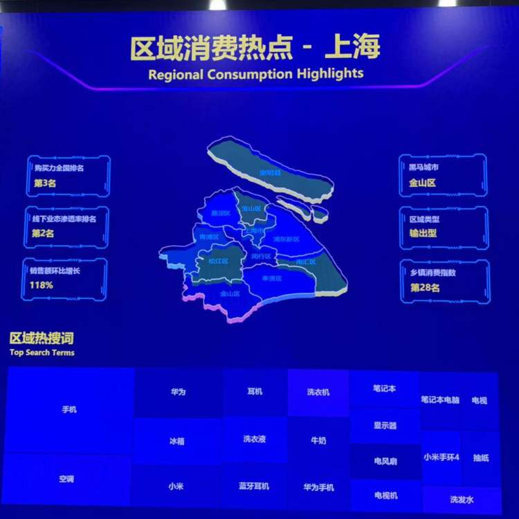 与去年购物节期间相比,金山成为上海市黑马,是市内消费金额增长冠军。