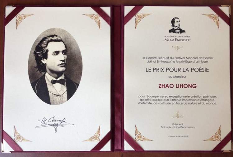罗马尼亚“米哈伊•爱明内斯库国际诗歌节”是罗马尼亚最重大的诗歌节,也是欧洲有影响的国际诗歌节,每年颁发的爱明内斯库国际诗歌大奖引人注目。赵丽宏是第一次荣获此项国际诗歌奖的中国诗人。