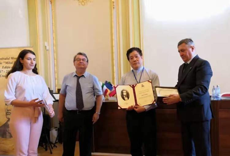 ■爱明内斯库国际诗歌节主席迪古奈斯库和克拉瓦约市长为赵丽宏(右二)颁奖