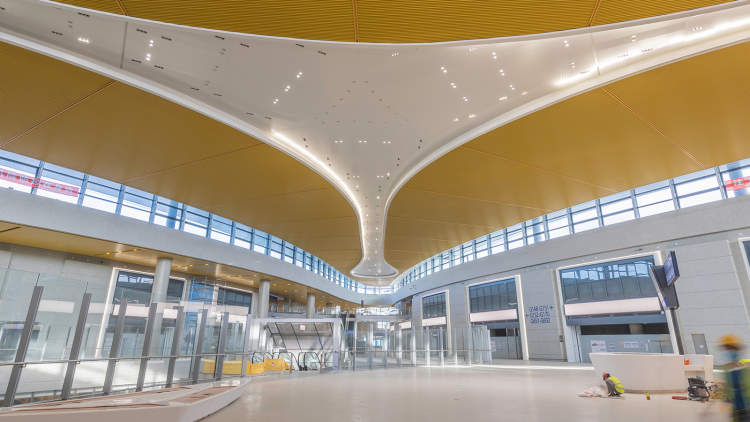 尤其是玻璃幕墙全长6公里的“大视野”让人眼前一亮,通透的幕墙所引入的自然光,方便旅客与机场空侧形成视线上的互动,既舒缓了旅客的候机压力,又提升了旅客的候机体验。