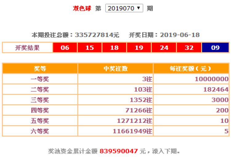 昨晚,中国福利彩票双色球游戏进行第2019070期开奖。当期双色球红球号码为06、15、18、19、24、32,蓝球号码为09。