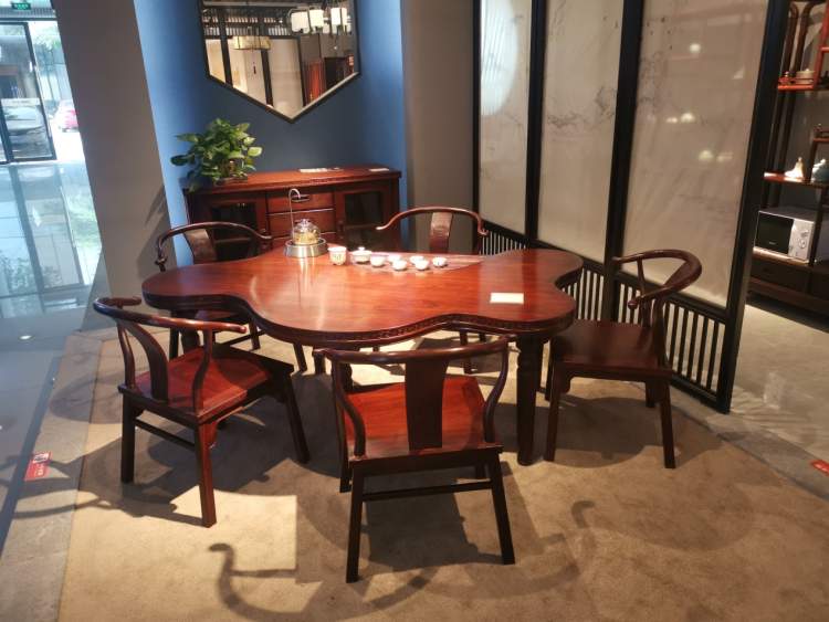 茶文化,中国自古有之。中式茶室,以茶为名,回归本质之美,一个清新雅致的茶室用具足以唤醒人们对于美好生活的向往和追求。此套茶桌以刺猬紫檀为原材料,其设计参照了钢琴的样式,不规则的桌面似乎感觉到了音符的跳动。桌面采用打蜡的工艺,将刺猬紫檀的原色原味得以完美的保留。爱好茶文化的读者千万别错过了。