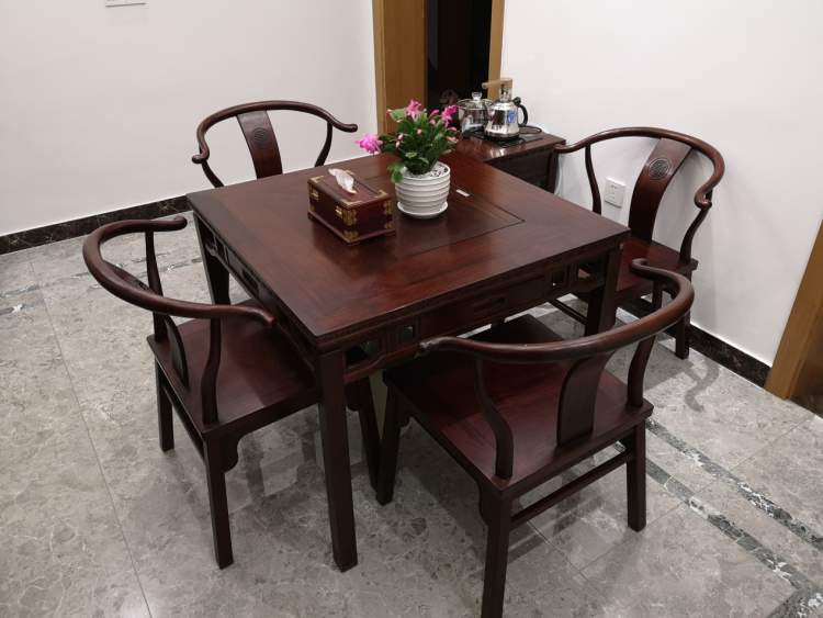 韦的每一件家具都有自己的故事,它不单单是一件家具,更是一件极具韵味和收藏价值的艺术品。此款方茶桌也是韦总根据实际生活的体验而设计出来的,彰显的是时代的生活态度。方桌中间推开面上的桌板就是一个茶台,可以约上三五好友一起品茗。合上又是一个规矩又不是韵味的餐桌。桌子的四边都设有抽屉,也是为了储纳物件而考虑。可谓是一桌多用,且尺寸也是比较适合现代中小户型。