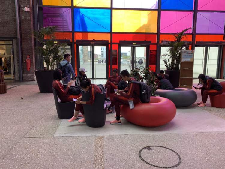昨天球队放假休整,教练组和队员都来到小城最大的商业中心LES DOCKS闲逛。虽然是勒阿弗尔最大的商业中心,但各类品牌较少,两圈下来大家已经意兴阑珊,索性找了休息区的沙发围坐成一堆玩着手机等集合。
