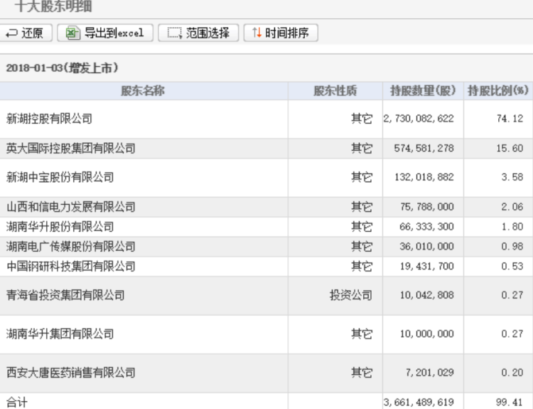 湘财证券第一大股东为新湖控股,持股74.12%;新湖中宝除参股新湖控股外,还直接持有湘财证券3.58%股份;与湘财证券同处湖南的华升股份、电广传媒,也在湘财证券前十大股东之列,其中华升股份持股1.8%,电广传媒持股0.98%。而新湖集团2005年便已入主哈高科,本次交易系哈高科收购同一实控人旗下证券公司股权,并不触发借壳,而是借道上市。