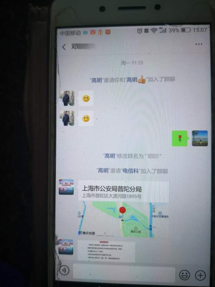 邓女士你不要不相信,我说得出你的姓名和身份证号,旁边还有普陀的公安民警‘高明’,他正在加你微信,不信你点开来看。