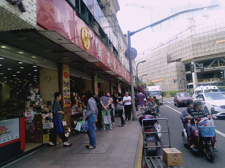 有交通协管员管理的地方,非机动车排放都比较整齐,但这家商店门口就有点乱了。四川北路可是虹口区“创全”重点路段啊!