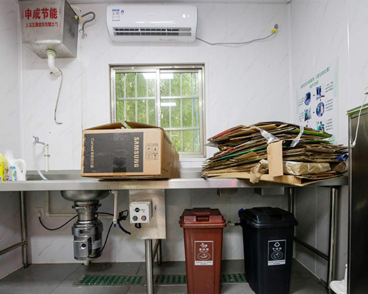 由于晶品苑的湿垃圾要就地粉碎处理,小区里需要一座处理这些湿垃圾的房子。居委主任刘蕾告诉记者,去年8月,万里街道找来一只集装箱,改造成房屋,放在远离居民住宅的地方。