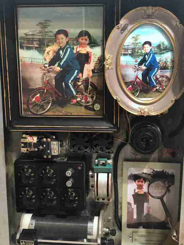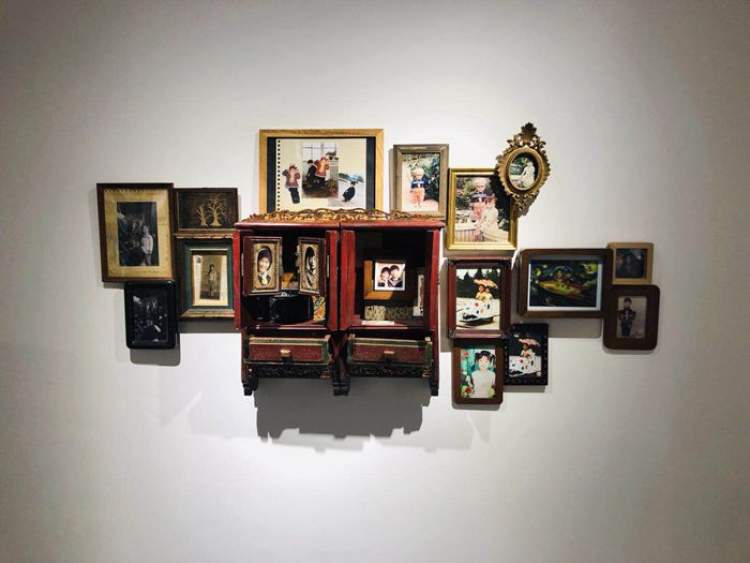 大部分装置,由艺术家亲自组装、拼贴,采用了胶带,塑料小盒子,相册,小木盒子等等配合相框做装饰,仔细观看装置时,有一种浓烈的浸入式观感。