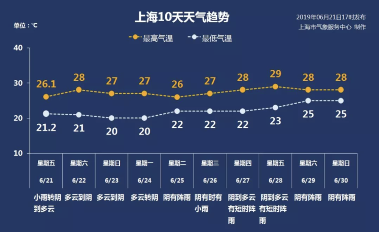 气温上和今天差不多,最高预计在27-28℃,最低预计在20-21℃,且风向偏北会改善高湿状况。这种好天气在黄梅季可以说是“别无所求”了。