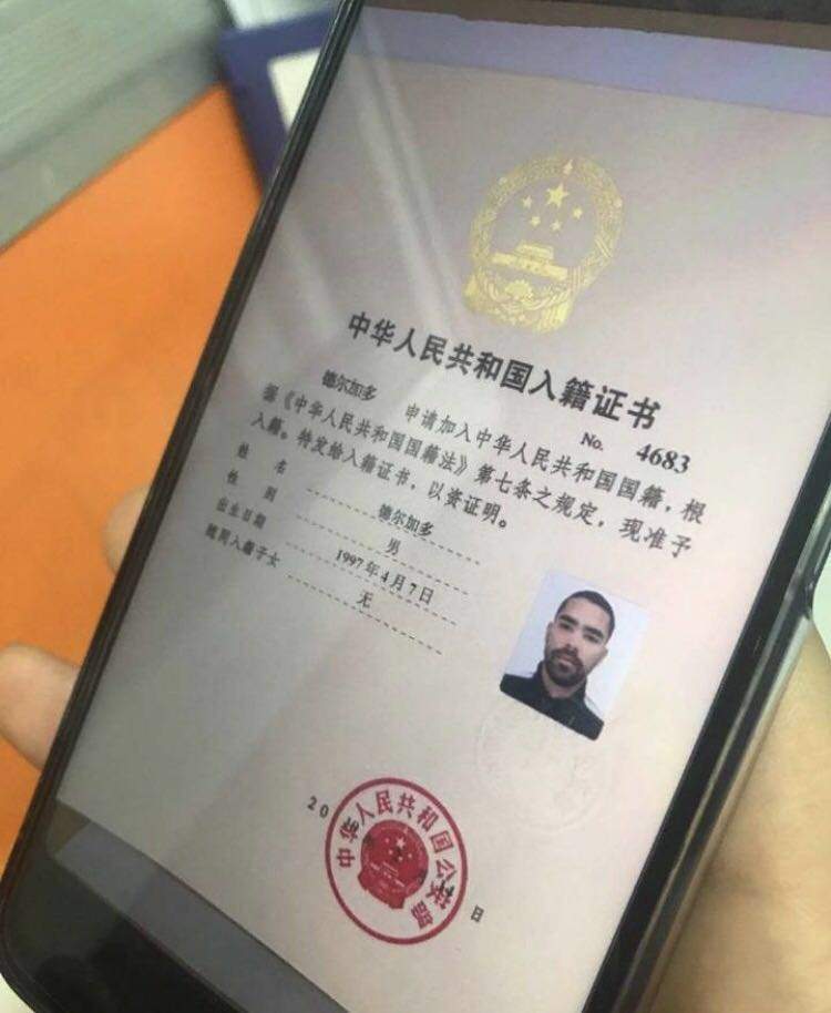今天下午,一张疑似德尔加多入籍中国的证书照片在网络流传。“德尔加多申请加入中华人民共和国国籍,根据《中华人民共和国国籍法》第七条之规定,现准予入籍。特发给入籍证书,以资证明。”证书上的照片,以及证书上注明德尔加多的出生日期1997年4月7日,都与山东鲁能球员德尔加多相符。