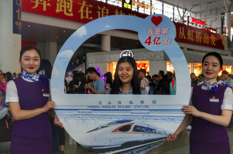 虹桥火车站迎来第4亿名旅客