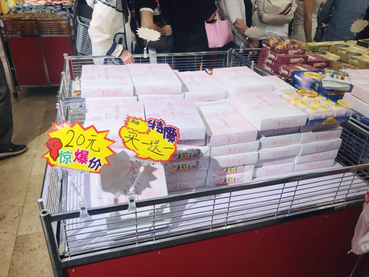 很多阿姨妈妈看中了包装精致的日式甜点,20元还买一送一,10元一盒的价格即使接近“赏味期限”仍很是划算,“可以当早饭吃吃,多买几盒。”