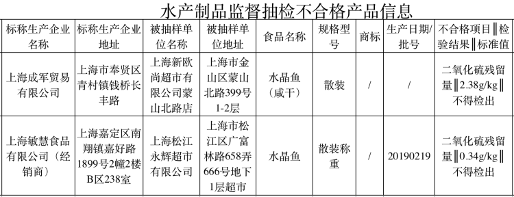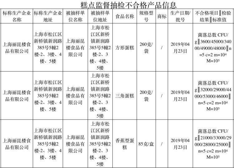 今天,上海市市场监督管理局公布了最新本市食品安全监督抽检结果,在551批次抽检样品中,有5批次食品不合格,分别为3批次糕点菌落总数不合格、2批次水产制品检出二氧化硫残留。