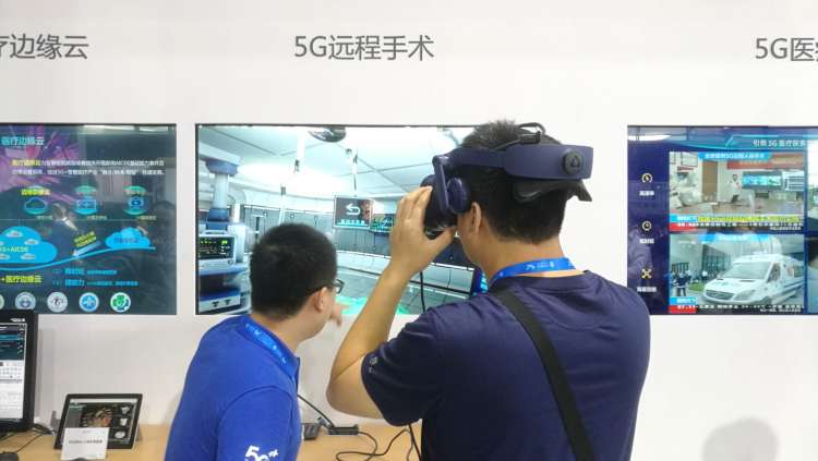 在中国移动展区,很多观众正挤在一个5G远程手术应用的展位前。在工作人员的指导下,一名观众戴上了VR眼镜,以医疗专家的视角率先体验了一把5G远程医疗指导。