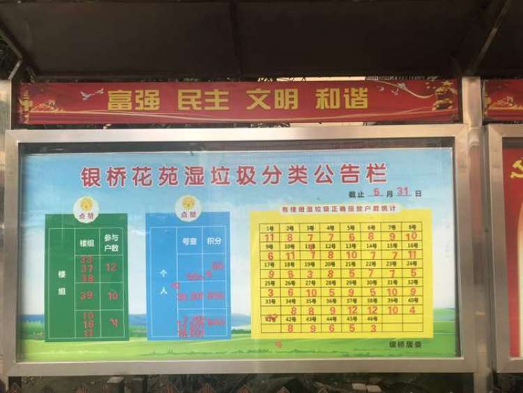 既要对分得好的居民有所激励,又要让分得不好的居民有所压力——正是在这种思路的指导下,银桥花苑还在小区入口处张贴了分类红榜。“依据是后台抓取的数据,清清楚楚、明明白白。” 姜轶这样表示。