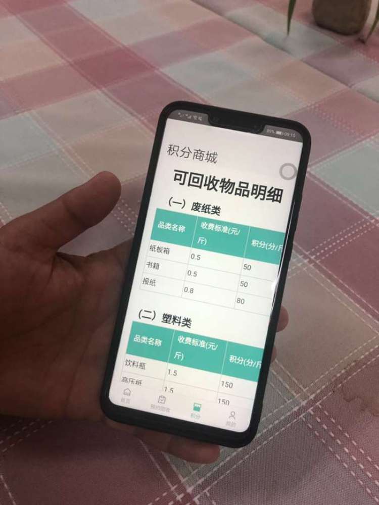 除此之外,APP还设置了可回收垃圾的一键预约处置模式,通过选择可回收大件垃圾或可回收小件垃圾,可上门时间等等选项,坐在家中就能完成可回收垃圾的处置。纸板箱0.5斤计50积分,饮料瓶1.5斤计150积分……所有的积分,在后台的积分商城,都可以兑换相应的实物。