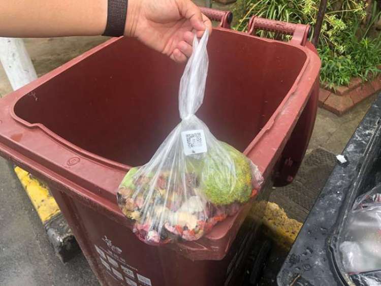 原来,银桥花苑的所有住户都有专属二维码,在扔垃圾前,需要在湿垃圾袋上贴好二维码,通过配套的后台系统,扫一扫便可以知道垃圾来自何处,如果垃圾分类到位,就可自动累积积分,换取一定的实物奖励。