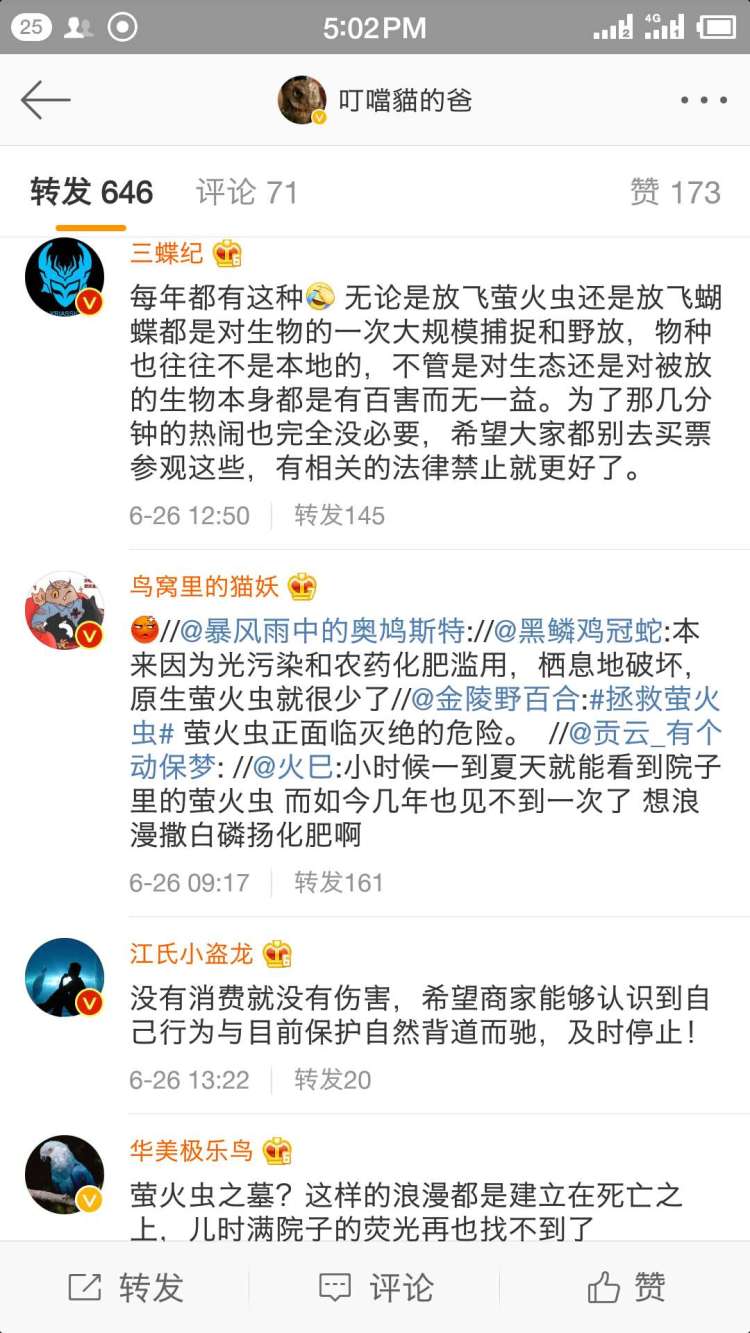 每年夏天,大型萤火虫放飞活动都会“准时”出现。今年,周浦花海计划于本周末(29日)起举办首届萤火虫星空展(相关报道在此)。主办方称,使用的萤火虫为人工繁殖,非野外捕捉。但多名国内权威昆虫专家表示,萤火虫可以人工繁殖,但百万只规模短期内难以达到。与此同时,不少网友呼吁抵制该活动,并称此类活动对萤火虫、对环境都是极大破坏,“大量从野外捕捉萤火虫对其栖息地环境将造成影响,对本地生态环境的影响也有待观察,追逐商业利益不能以破坏环境为代价。”
