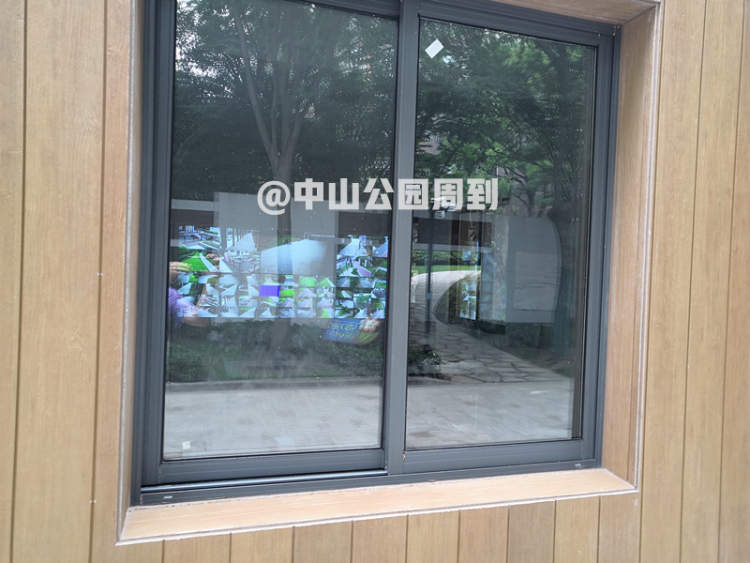 公园的大门口新建了门卫室,门卫室外还设有洗手台盆,杉杉发现,门卫室里还有监控大屏,可以对公园内实时监控,有了监控,夜晚来公园锻炼更有安全感!
