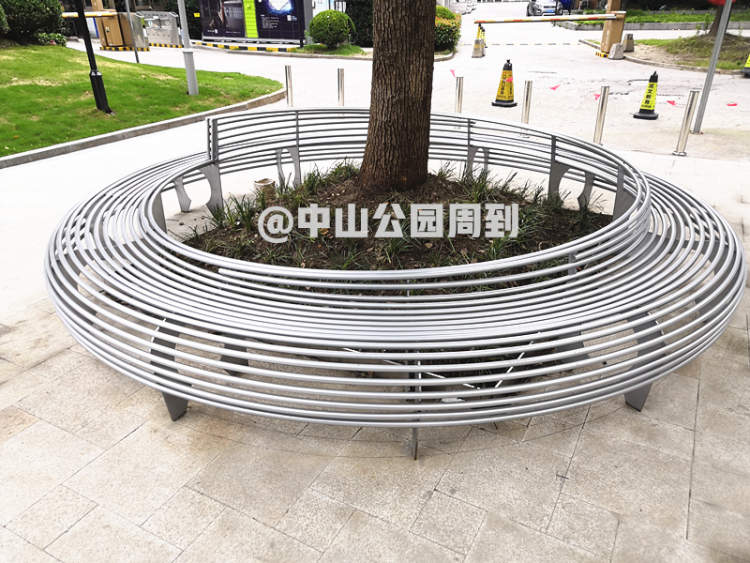 在公园门口,几棵大树周围都做了新的“围栏式座椅”,简单的金属线条既起到了保护大树的作用,也可以供市民休息。
