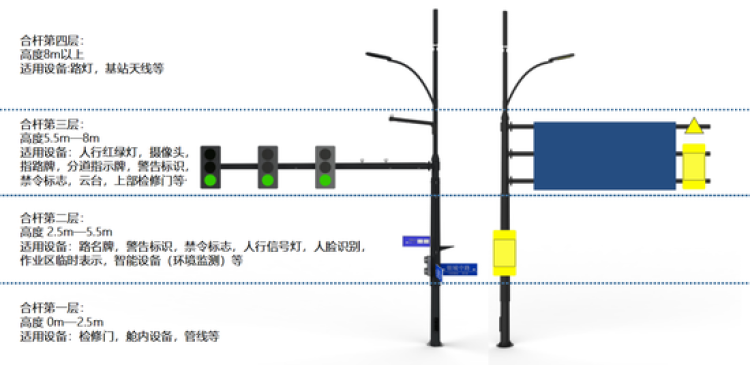 市政总院透露说,城市道路综合杆系统的实施,从基础设施“工程”入手,实现“合杆、合管、合箱”全体系设施整合。前端有综合杆,后端有综合箱,其间排好了综合管道——综合杆系统,为将来智慧设施的加装实施和换代升级准备了“充分必要条件”。对城市道路来说,可谓“综合杆架好,任我智慧行”。