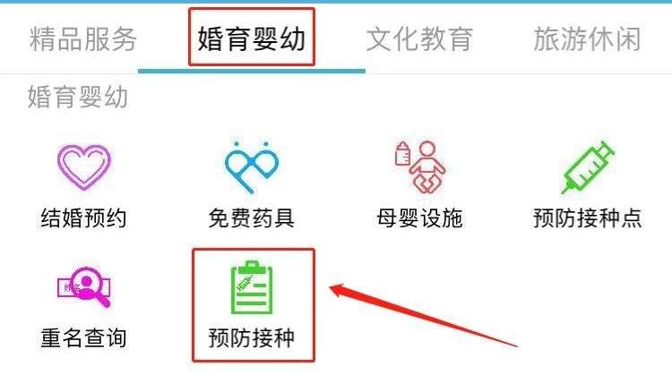 也可以点击“更多”后从“婚育婴幼”板块进入“预防接种”服务