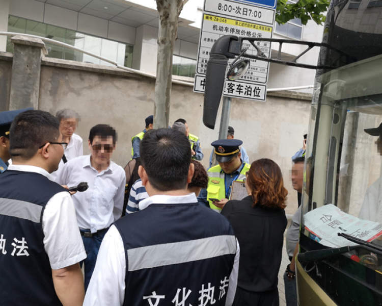 ▲交通执法部门联合旅游文化执法部门开展旅游大巴乱象整治