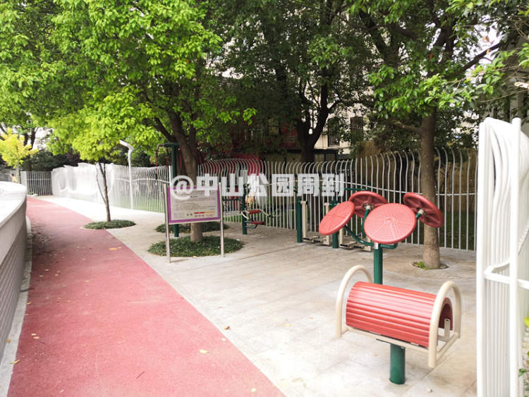 步道还设有健身器材区,方便附近小区居民前来锻炼。