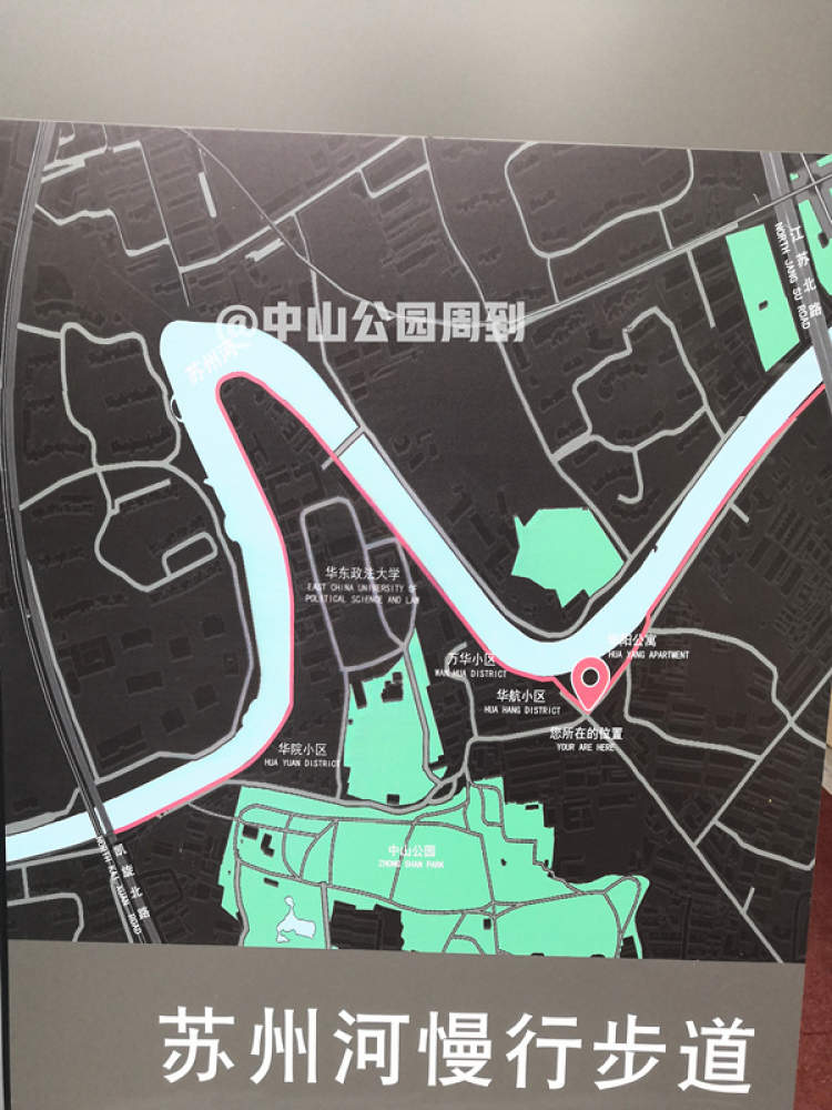 前几天,杉杉从华阳路华航小区进入苏州河健身步道,立马就可以感受到这一段步道的不一样。
