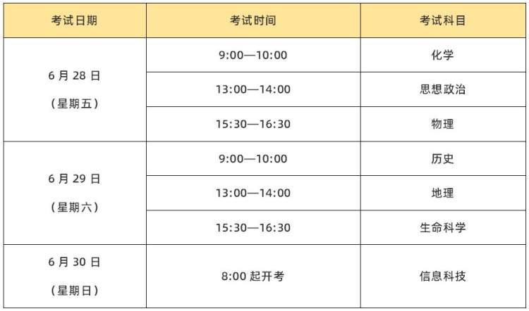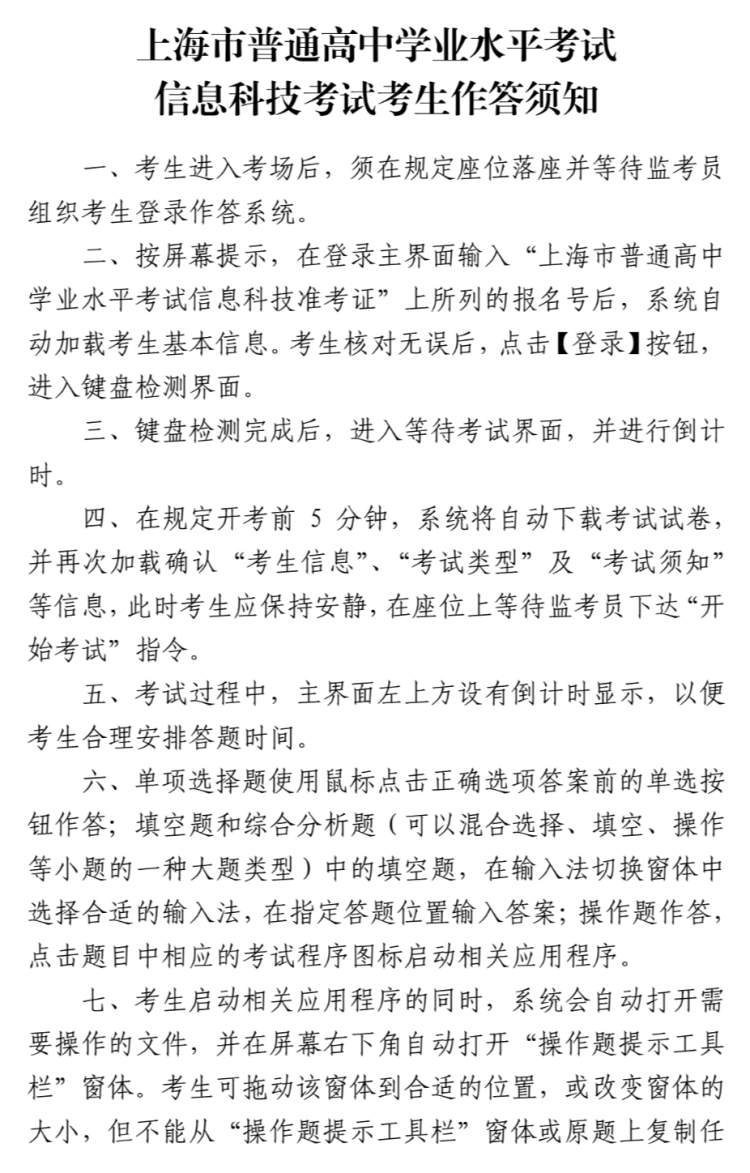 考试需要注意的是,信息科技科目考试最晚入场时间与其他科目不同,考生请于指定时间到考点报到,开考前30分钟进入准备室,迟到考生不得参加该场次考试。