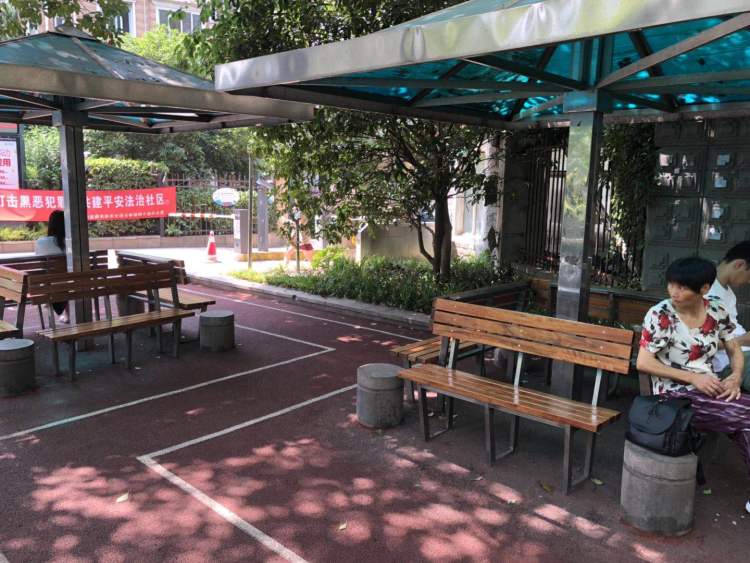 健身步道从起点到终点全长一共225米,配有两根跑道,步道两侧均有绿化带,同时又有树荫遮挡,使得站在步道上的体感凉爽。此外,健身步道上还有长石凳和凉亭可供居民休息。