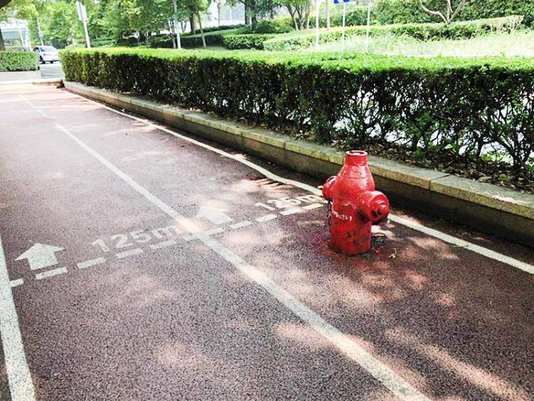 但美中也有不足,有些养狗人士在遛狗时,让狗狗直接在石凳旁方便,留下了难看印记。在步道125米处还有一突出地面的消防栓,位置正好在一条跑道中央,略显尴尬。而在健身步道的终点附近,由于绿化带植物生长过于茂盛,导致部分绿叶占据了跑道空间。