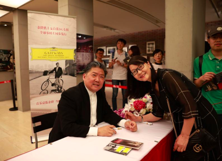 演出结束后,刚刚放下指挥棒的余隆旋即又拿起了签名笔,在现场做起了DG专辑的签售活动,观众在上交音乐厅的长廊内很快排起了“长龙”。据悉,当晚准备的200张专辑全部售罄,中国图书进出口(集团)总公司也透露,《Gateways》是中图近年来进口数量仅次于《维也纳新年音乐会》的音乐专辑。