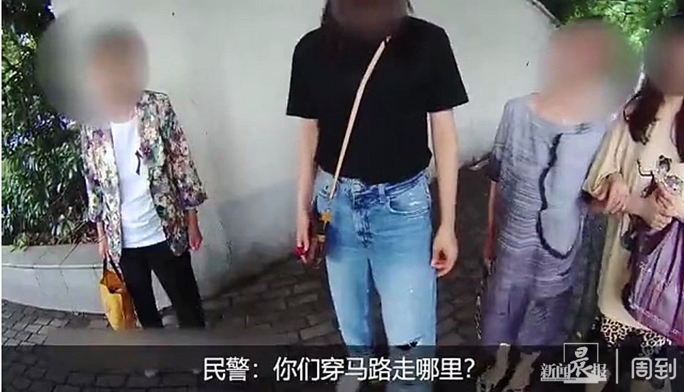 民警见状,立即将横穿马路的四个人拦下来,要求她们出示身份证件,配合执法。