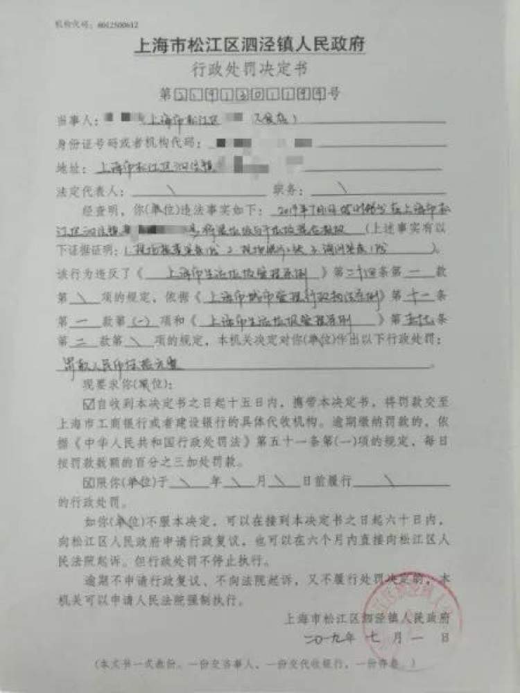 今天,全市有4名个人被开出垃圾分类罚单。比如,松江泗泾镇一个体餐饮店负责人因态度较为恶劣,对垃圾混合投放行为拒不改正,被罚款50元。