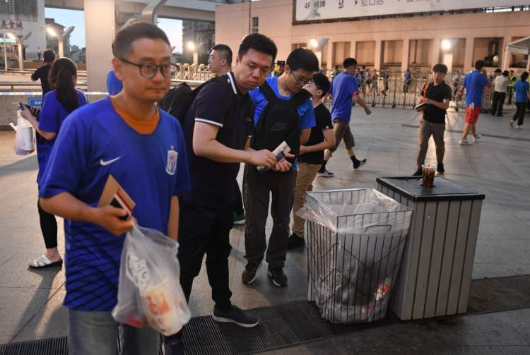 今晚比赛开始前大概一刻钟,周到记者碰到了一边吃着洋快餐,一边往自己所在看台赶的申花球迷小王。他是在下班后马上搭乘地铁赶往虹口足球场的,由于公司距离虹口足球场比较远,路上花了一个小时,所以来不及吃晚饭的他,只能买了点快餐,一边吃着一边赶到球场。问起他一会如何处理垃圾,小王说,“去年就发起了垃圾不乱扔,大家也越来越自觉,很多球迷都会把垃圾扔到垃圾箱里。现在跟以往不同的就是要垃圾分类,这段时间大家在家里就已经做了,所以基本上还是比较清楚的,食物残渣是湿垃圾,袋子是干垃圾。”