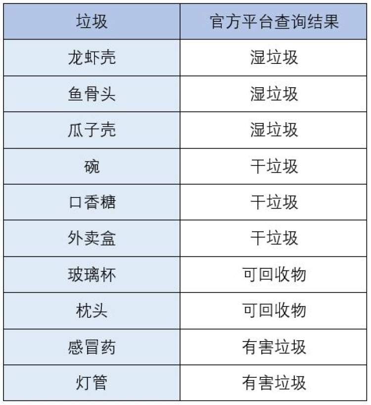 在正式开始测试之前,记者通过上海市绿化和市容管理局与“上海发布”微信号合作提供的查询平台查询了以上10种垃圾的类别,查询结果如下: