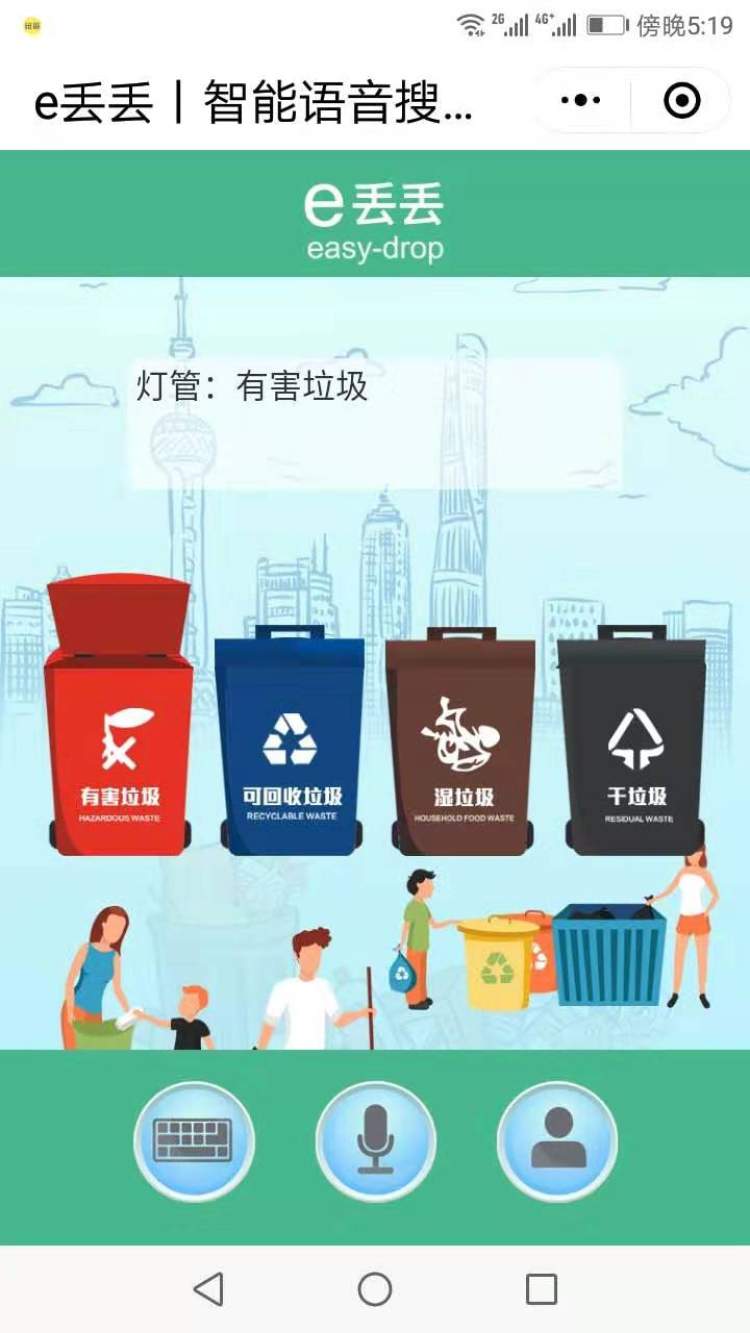 在e丢丢(小程序)中,依次按下语音识别按钮,说出龙虾壳、鱼骨头、瓜子壳、碗、口香糖、外卖盒、玻璃杯、枕头、感冒药、灯管10种垃圾的名字,小程序都能准确识别,并快速跳出对应垃圾的查询结果。