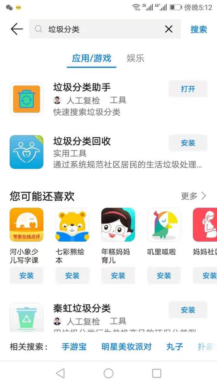 在华为应用市场里,记者搜“垃圾分类”只搜到了1款专门用来查询垃圾类别的APP,而且该APP的安装量只有1万 ;在苹果应用商店,记者搜到的垃圾分类查询APP同样很少,安装量也普遍不高。