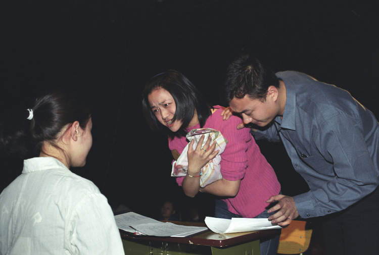 ■《如梦之梦》在人艺小剧场演出剧照,当时才大一的汤唯(中)