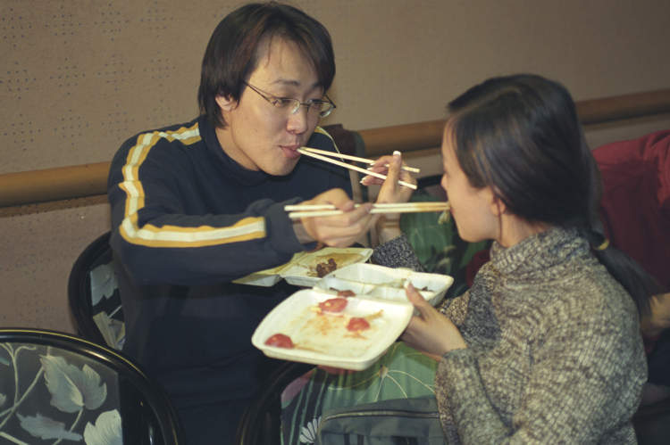 ■2001年《狂飙》排练间歇,辛柏青、朱媛媛秀恩爱。本来《潜伏》是给朱媛媛和辛柏青量身定做的,后来朱媛媛怀孕了,就成了孙红雷和姚晨演了