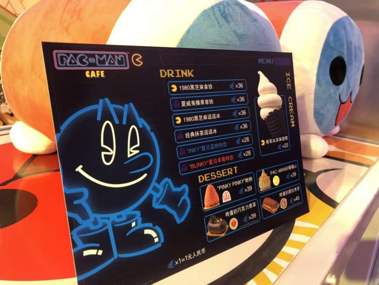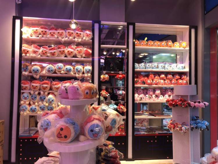 走进大门,映入眼前的便是游戏周边售卖区,周边的种类包括Pacman的幽灵公仔、太鼓达人玩偶抱枕,还有各种挂件、贴纸、包包等,价格在几十块到几百块不等。