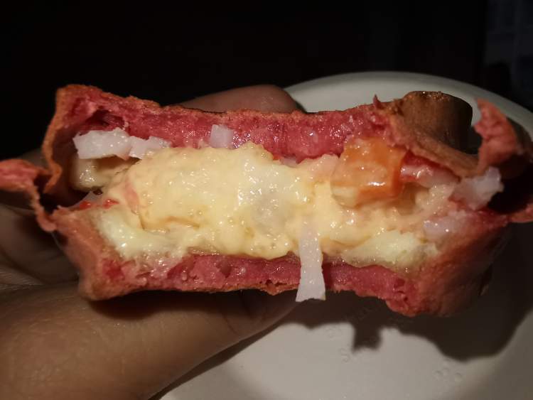 里面的香芋泥特别糯,吃起来口感很棒,香芋和牛肉的搭配也还蛮新奇、但是我觉得牛肉可以再咸一点点!