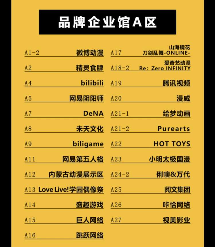 喜欢各类动漫的伙伴们还可以仔细看看以下展馆分布,Pick一下你们喜爱的Coser!(如若拍照,别忘了先询问一下哦~)