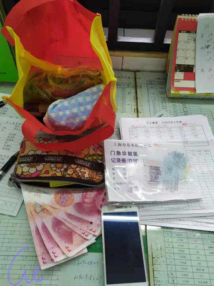 他发现,袋中有一部手机,还有钱包、医保卡等物品。根据医保卡判断,失主是一位八十多岁的王婆婆。调度室众人不敢怠慢,纷纷行动起来,开始寻找联系方式,因为大家想到对于一位老人而言,手机、钱包,特别是医保卡遗失了,心里该有多着急啊!