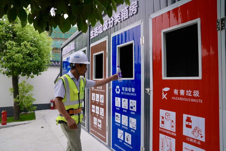 大型建筑工地是怎么做垃圾分类的?在位于七宝生态商务区的上海万象企业中心工地,不仅建造了垃圾箱房,配备了垃圾分类容器,工人们分类投放垃圾还可以积分,在小超市换取商品。